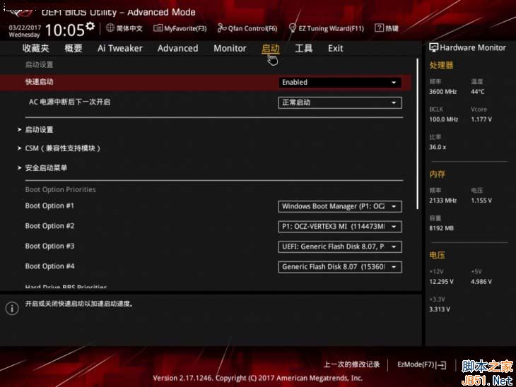 啟動設置界面包含啟動順序、FastBoot、開機畫面等相關設置。