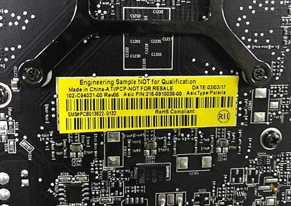 標簽證實這款顯卡是Polaris核心產(chǎn)物,該卡生產(chǎn)于3月3日