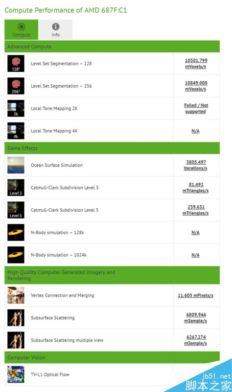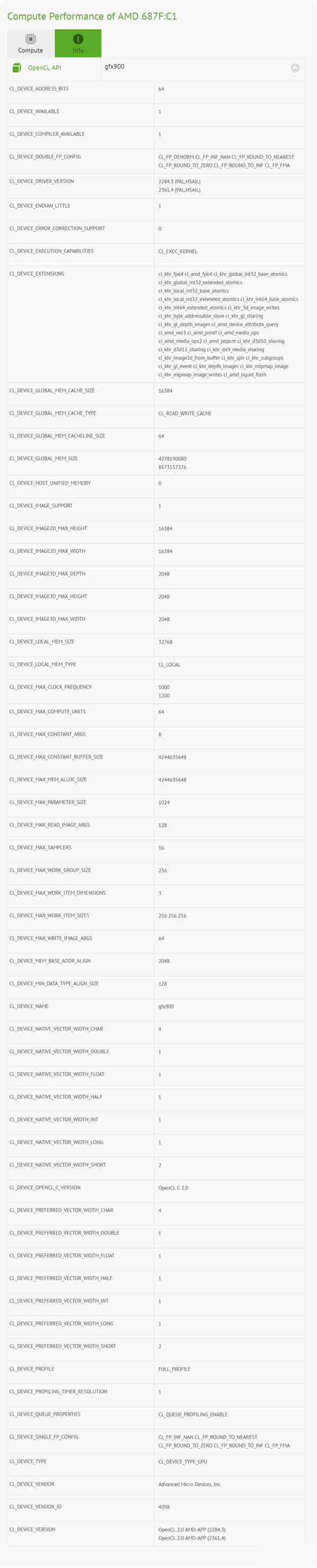 通用計算測試項目ComputeBench的測試庫中,現在終于出現了AMD Vega的身影,設備ID 687F:C1,和此前AMD展示時顯示的字符串完全一致。