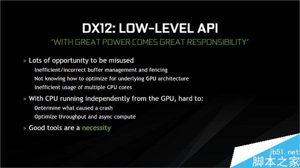 憑借優先支持異步計算,AMD顯卡在DX12游戲上的表現十分驚艷,相比于DX11提升幅度巨大,但其實橫向對比NVIDIA顯卡,性能上并沒有太多優勢。如今,NVIDIA又要在DX12打一針雞血。