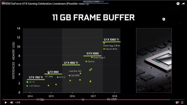 3月1日消息 NVIDIA正在直播GGC大會(huì),英偉達(dá)負(fù)責(zé)人黃仁勛發(fā)布了GeForce 1080Ti顯卡,這款顯卡搭載了11GB顯存,能夠讓游戲在5K分辨率下輕松運(yùn)行,在此直播大會(huì)上,英偉達(dá)負(fù)責(zé)人還公布了GeForce 1080Ti顯卡的售價(jià)和發(fā)售時(shí)間,歡迎大家前來了解。