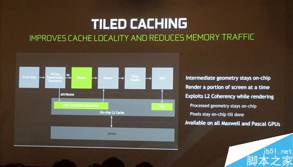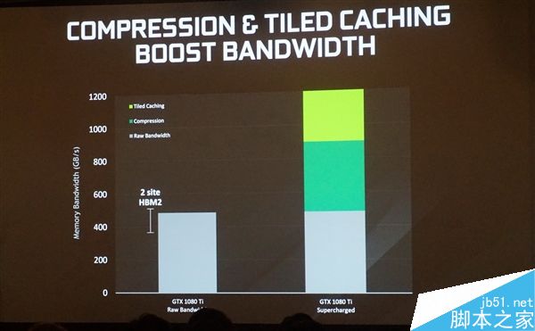另外,GTX 1080 Ti還支持平鋪緩存(Tiled Cache),進一步提升渲染效率和顯存性能,降低顯存通信浪費,再加上顯存壓縮,有效帶寬號稱可以高達恐怖的1200GB/s。