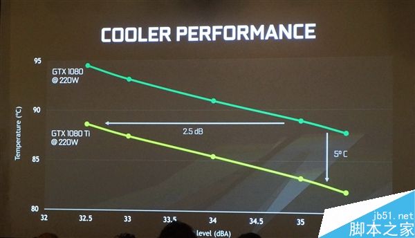 散熱上也有了新的真空腔均熱板設計,散熱面積擴大了一倍,相比于GTX 1080同等噪音下溫度降低5℃,同等溫度下噪音降低2.5分貝。