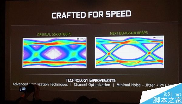 GTX 1080 Ti也不單純是個變換規格的產物,比如與美光合作的GDDR5X顯存已經是新一代產物,在信號、通道、翻譯方面做了進一步優化,從而使頻率從10GHz提高到11GHz。