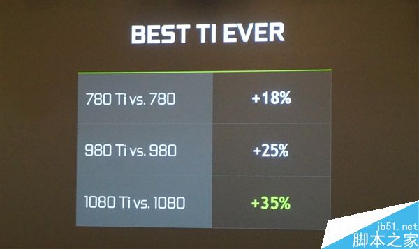 性能上,GTX 1080 Ti號稱相比于GTX 1080在不同游戲中提升20-50%不等,平均達35%,這也是歷代Ti旗艦中提升幅度最大的。