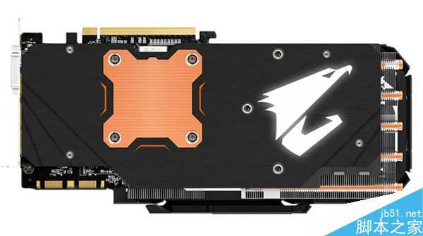 GTX 1080 AORUS與普通版GTX1080 Xtreme Gaming不同的地方除了頻率之外就是背板了,GTX 1080 AORUS的背板帶有發光的AORUS LOGO,另外在GPU的背面加了一塊純銅背板,這樣GPU背部元件的發熱也可以快速的散發走。