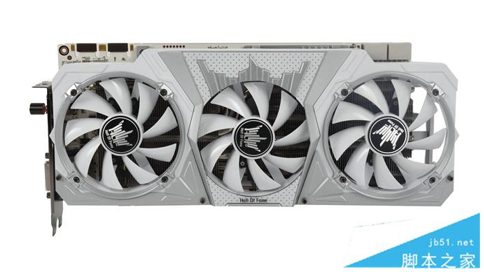 影馳名人堂系列通體白色設計簡直是顯卡界中的一朵碧蓮,出淤泥而不染。全白色的設計不僅顯得高貴典雅,而且很與眾不同,產品識別度極高,一看就知道是影馳名人堂。可是GTX 1080上的名人堂取消了GTX 1060上的"Hall of Fame" PCB燈,應該是因為供電部分占了該部分的PCB緣故。
