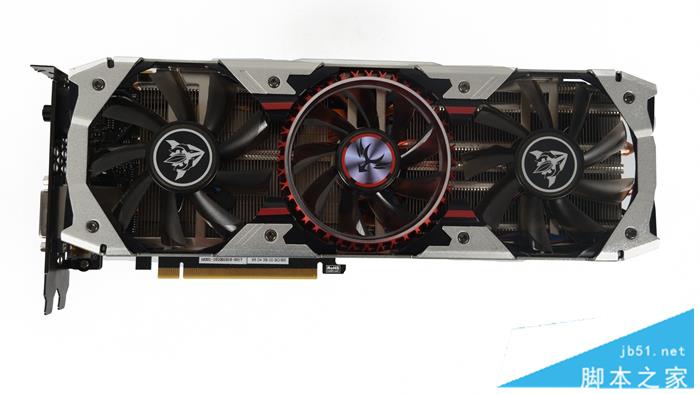 GTX 1080 烈焰戰神X Top AD是七彩虹最新力作,換上了Silver Shark散熱器,全金屬的導風罩和中央紅色渦輪式外形設計,看起來質感和美觀程度都很不錯。鏤空造型背板創意略顯不足,但PCB上擁有iGame LOGO燈效。