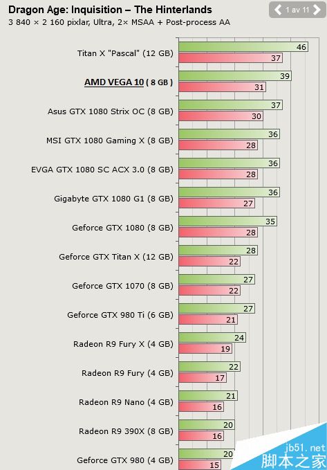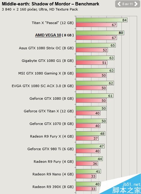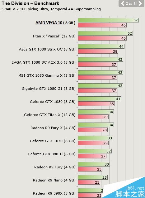 今天,SweClockers論壇出現了VEGA 10 8GB顯卡的跑分,測試場景包括4K分辨率下的《古墓麗影10》《巫師3》《殺手6》等9款主流游戲的跑分測試成績,竟然在《全境封鎖》《殺手6》《孤島驚魂:原始殺戮》三款中都壓制了目前地球最強的新TITAN X(Pascal架構),要知道后者售價9499元,高達3584個 CUDA、12GB G5X顯存,是目前唯一的單芯4K 60幀產品。