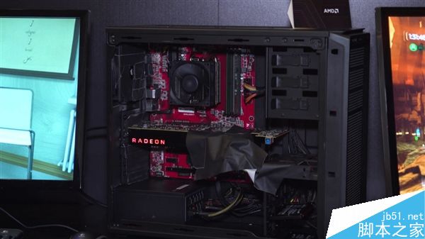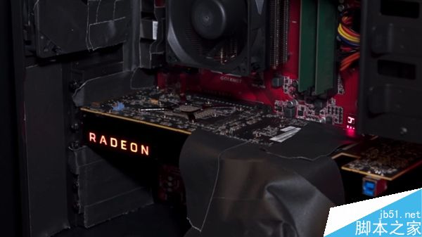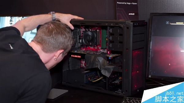 外媒也送上了對(duì)平臺(tái)中VEGA顯卡的實(shí)拍,目前采用雙槽設(shè)計(jì)、風(fēng)冷,標(biāo)準(zhǔn)長(zhǎng)度,頂部的Radeon紅色信仰燈保留。
