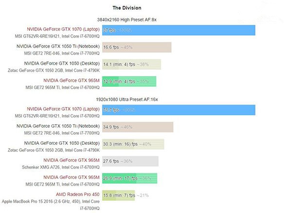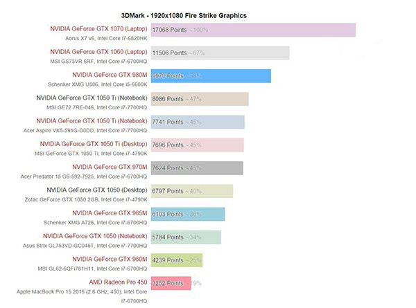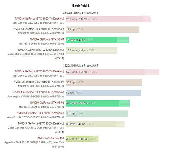 目前已經有外媒將這兩款顯卡的具體性能進行測試,結果顯示和上一代相比性能提升巨大,應該是未來中端游戲筆記本的大殺器。notebookcheck已經在今天早上首發了移動版GTX 1050和GTX 1050Ti的測試,我們一起來看下。為了讓測試更加公平,NBC使用目前市場上流行的25款游戲進行測試。