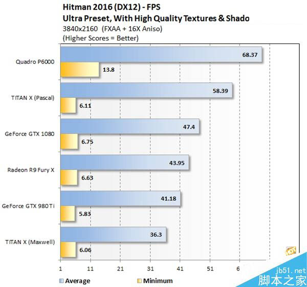 游戲方面,評測機(jī)構(gòu)僅使用了《殺手2016》,P6000戰(zhàn)勝了TITAN X,幅度竟然高達(dá)17%,成為新的游戲神卡。