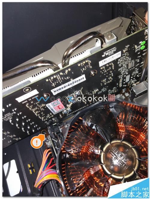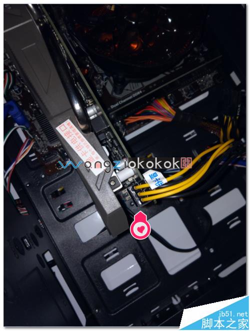 4、檢查塑料卡扣是否扣緊了,然后接上顯卡的供電線。(很多朋友這個供電線會忘記接!)如圖