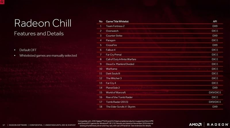 目前Radeon Chill支持的游戲僅有18款——