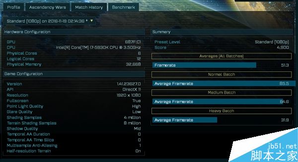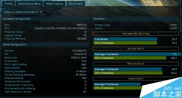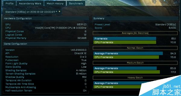 所測游戲時大家耳熟能詳的《奇點灰燼(AOTS)》,這是首款DX12游戲,雖然在玩家市場聲音不大,但因為DX12 API的緣故,跑分是個不錯的選擇(尤其A卡)。