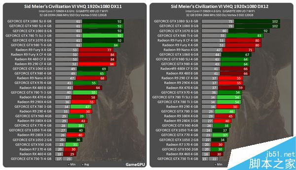 對于《文明6》來說,其實30FPS就夠,所以1080P下 GTX 950/RX 460都可以爽玩。