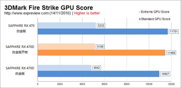 開核后的RX 470D性能上無限接近RX 470,差距在3%以內;因為RX 470D白金版自身限制過多,對比未開核的RX 470D性能只提高了5、6%,幅度有些不盡人意,因為正常水平下RX 470D與RX 470性能差距在10%左右。