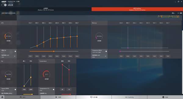 這次我們使用的是藍寶石RX 470D白金版進行開核測試,需要提前說明的是由于RX 470D白金版散熱器是采用公版渦輪散熱,其功耗墻、溫度墻設置過于嚴苛,導致不能穩定工作在最高頻率下,3DMark測試下頻率都是在900MHz左右徘徊,性能遠低于RX 470D正常水平,需要在AMD Radeon設置中把Temperature和Speed調至手動模式,同時將功耗極限以及最小聲學限制拉直最高。藍寶石RX 470D白金版方能發揮出本有的性能,因此以下測定3DMark成績均基于該設定得出。
