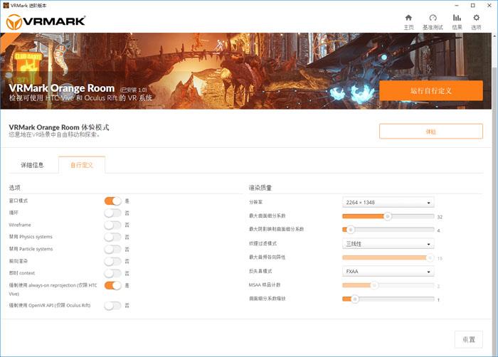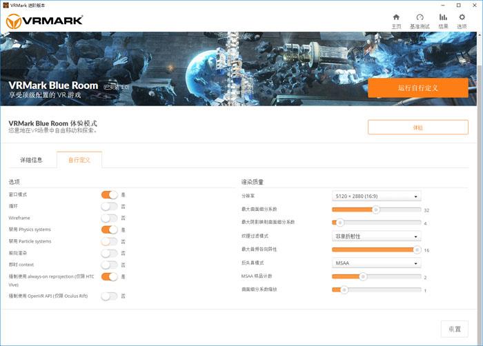 VRMark的兩個測試是有等級劃分的,Orange Room是一個基礎測試,用來測試設備是否可以使用HTC Vive以及Oculus Rift,該測試是免費的,而Blue Room則是進階測試,用來測試設備是否能在最高設置下享受VR游戲,這測試則是收費的。