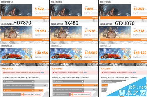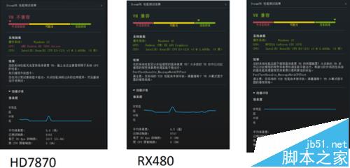 從圖中可以看出來,RX480的VR TEXT只有6.7分左右,970顯卡用戶表示大概7分。勉強能打平把。而1070可以達到11分,確實不是一個檔次的。