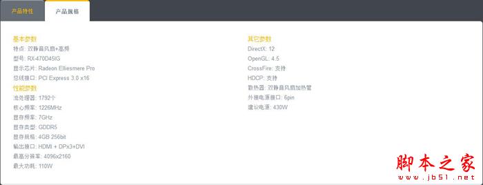 另外還有一個比較重要的點就是他的功耗,XFX官方放出的規格表中提到它的最大功耗為110W,采用了單6pin外接供電,想必功耗降低溫度也會相當的不錯。容小編YY一下,它非常有可能就是RX 470削減了部分流處理器而成的,或許能來個開核?
