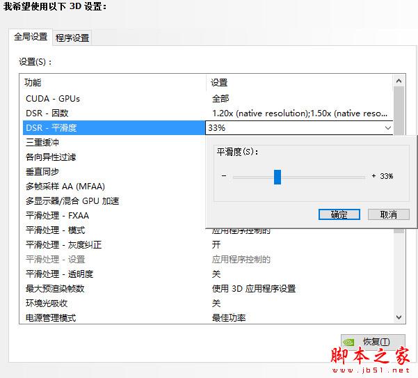 DSR還有平滑度這個選項,這個平滑度數(shù)值越低圖像就越清晰,不過就會失真有鋸齒,數(shù)值越高畫面就越平滑,但是畫面會模糊,個人建議大家就別動這個數(shù)值了,維持33%的默認值就行。
