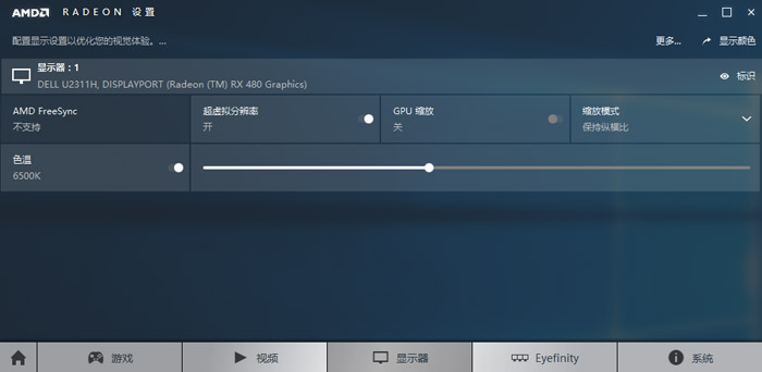 AMD的VSR開啟方式就在Radeon設置里面的“顯示器”菜單下,直接把“超虛擬分辨率”打開就可以了,沒有其他參數(shù)可設置。