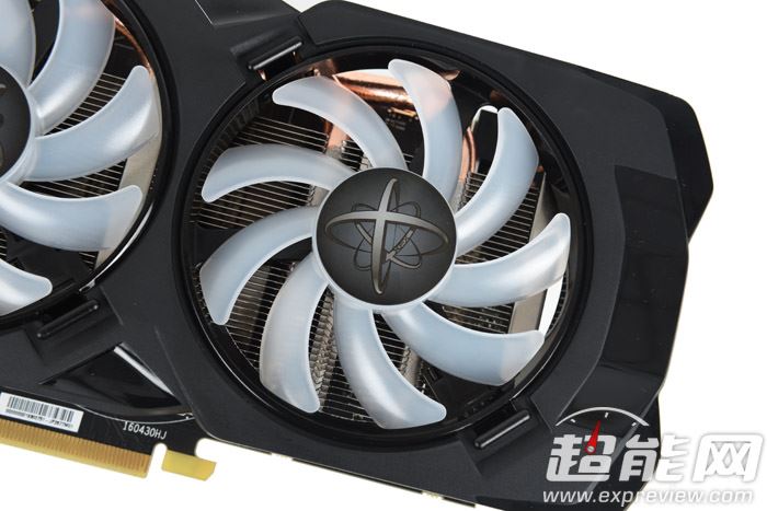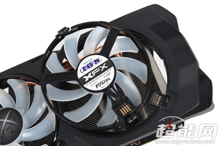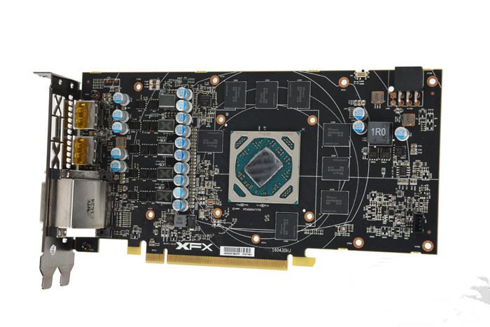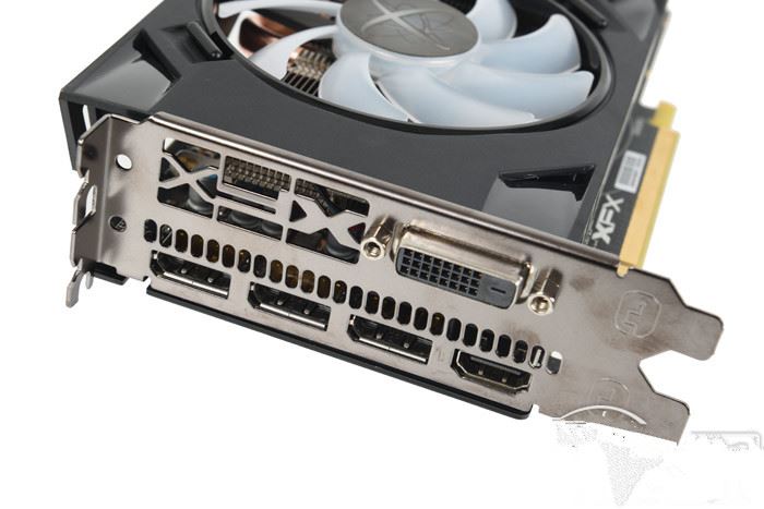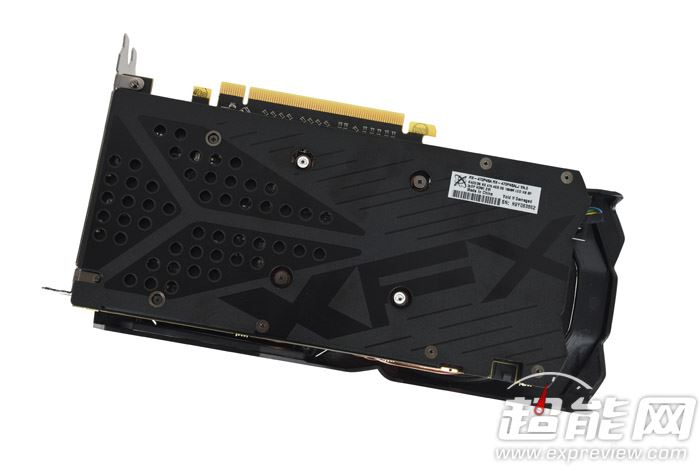 視頻輸出接口包括三個DP接口、一個HDMI接口和一個DVI-D接口,擋板依舊那么有XFX風格