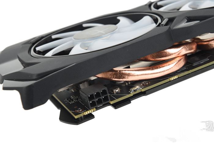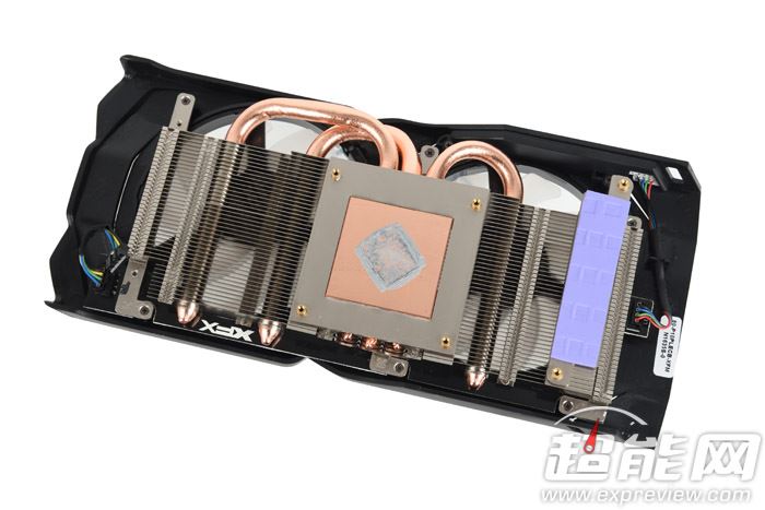 顯卡散熱器采用三根8mm直徑的熱管,散熱器前端還可以直接接觸到供電Mosfet