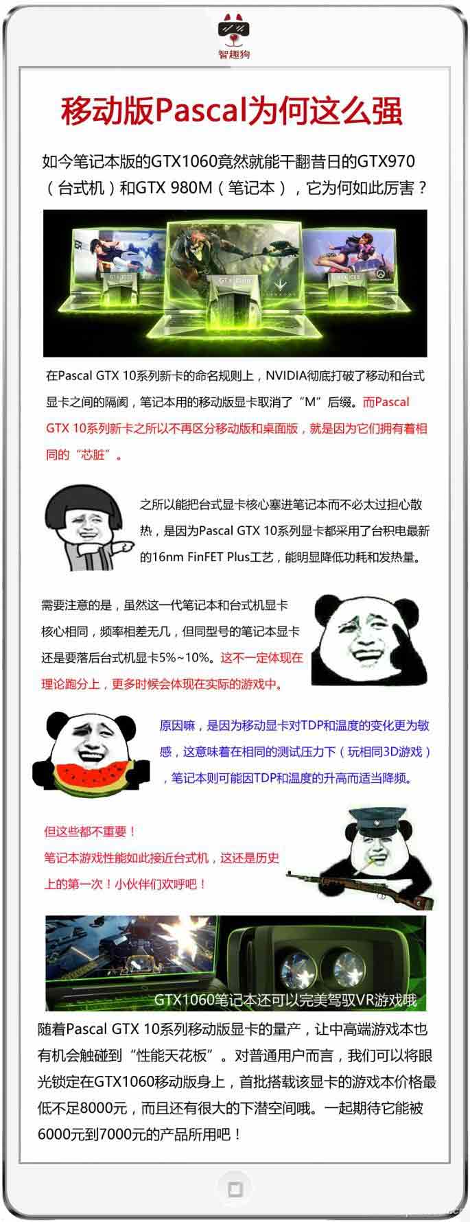 隨著Pascal GTX 10系列移動(dòng)版顯卡的量產(chǎn),NVIDIA將再次主導(dǎo)筆記本獨(dú)顯市場(chǎng),讓中高端游戲本也有機(jī)會(huì)觸碰到“性能天花板”。對(duì)普通用戶而言,我們可以將眼光鎖定在GTX1060移動(dòng)版身上,首批搭載該顯卡的游戲本價(jià)格最低不足8000元,而且還有很大的下潛空間哦。一起期待它能被6000元到7000元的產(chǎn)品所用吧!