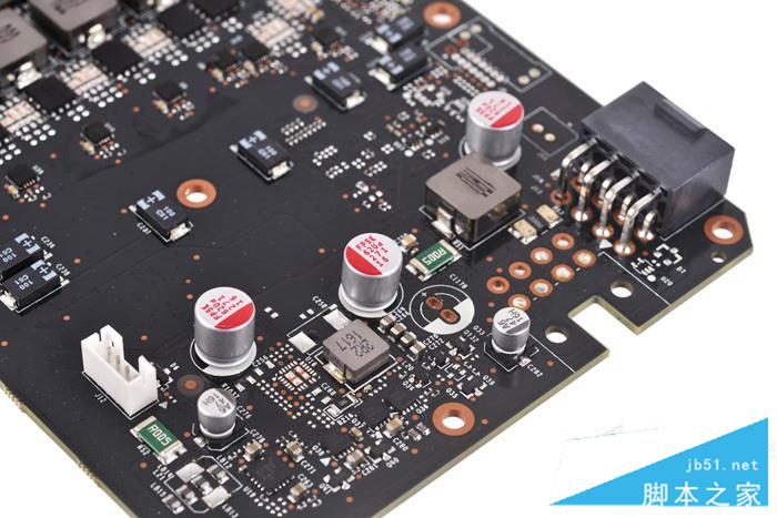 與我們之前所測試的GTX 1070/1080不同,GTX 1070冰龍超級版雖然也是公版的PCB但它用的電容是來自日本富士通的電容,而公版的電容是來自臺系立隆。