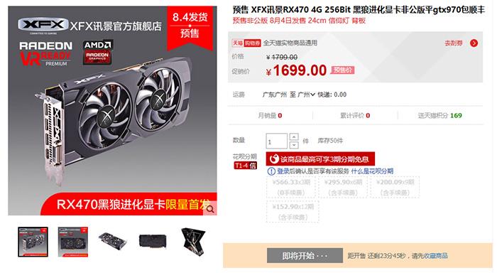 實際上援引海外網店的定價只是為了證實一件事——此前RX 470顯卡其實已經算是公布國內價格了,4GB RX 470顯卡在淘寶上的預訂價是1699元(建議價是1799元),但是8GB RX 470顯卡沒有公布。