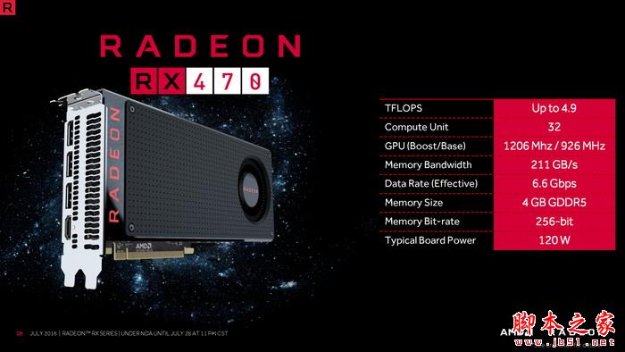 值得注意的是功耗,AMD對于功耗的描述不再使用習慣上的TDP功耗,而是典型功耗(Typical Board Power),RX 470的這一功耗是120W,不過此前的報道中有消息顯示RX 470功耗是110W。