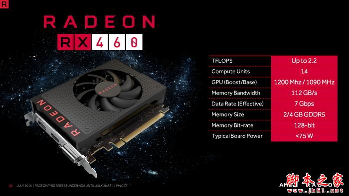 RX 460的典型功耗低于75W,不需要外接供電了。