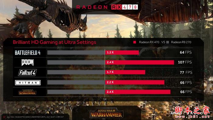 與R9 270顯卡(規格相當于HD 7870)相比,RX 470性能提升少則50%,多則140%。