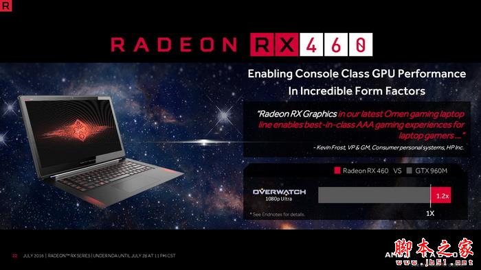 對于RX 460來說,它除了在桌面顯卡市場上擔當低端主力之外,另一個重點則是筆記本市場,為此AMD還開發了新型的封裝,厚度從1.9mm降至1.5mm。至于性能,AMD PPT中有與GTX 960M的對比,表示性能比后者高了20%,如果真是如此,這還不錯。