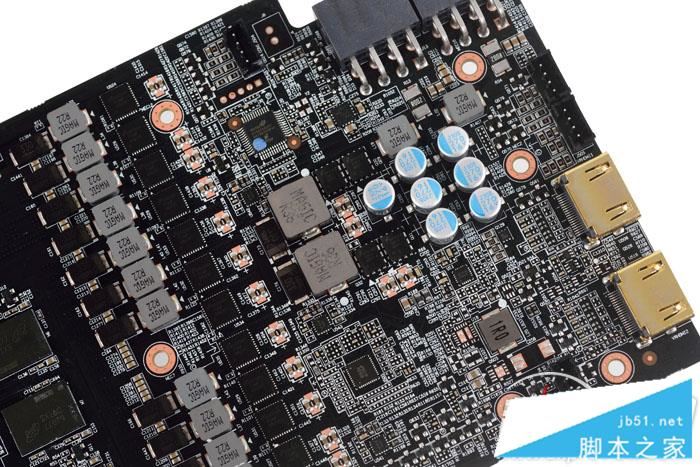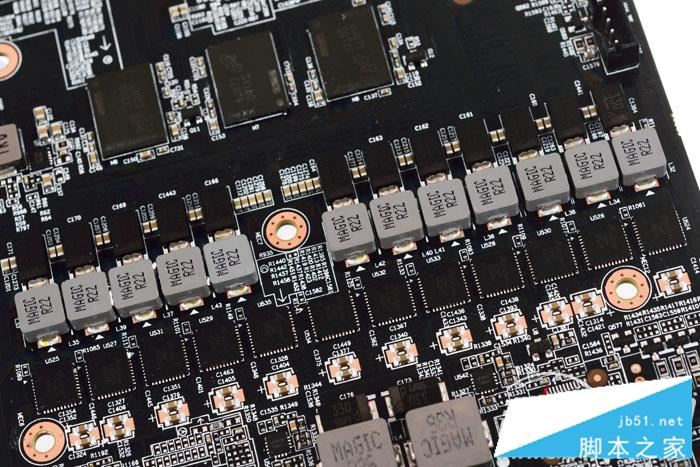 顯卡采用越肩式PCB能容下較多的電子元件,12+2相供電設計遠比公版豪華