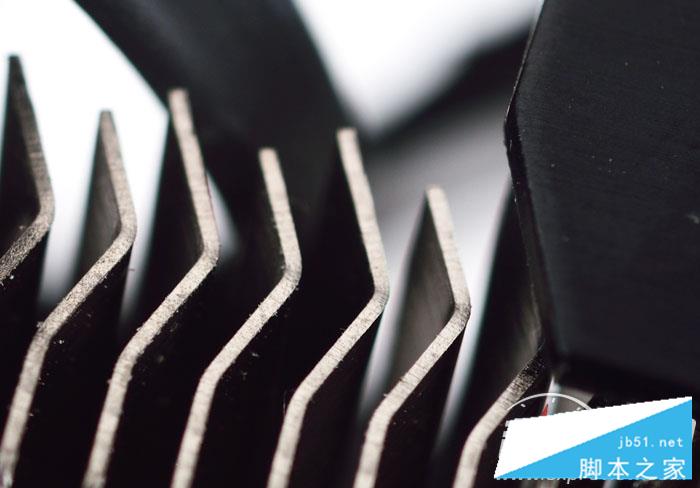 另外散熱器的鰭片也不是普通的設計,采用彎月形造型,可以更有效增大鰭片表面面積,相比與傳統的鰭片,它有著更好的散熱效能,能減少空氣氣流的損失,讓氣流與鰭片可以更好的接觸,快速帶走熱量。