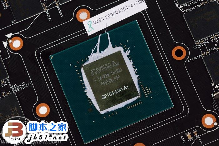 而拆開了散熱器之后,我們可以看到一塊大大的散熱支架覆蓋在PCB上,一方面能防止PCB變彎,另一方面能幫助主板上的顯存以及供電的MOSFET芯片散熱。另外這塊散熱支架還預留了安裝顯卡支架的螺絲孔,如果有需要的朋友可以買根顯卡支架。