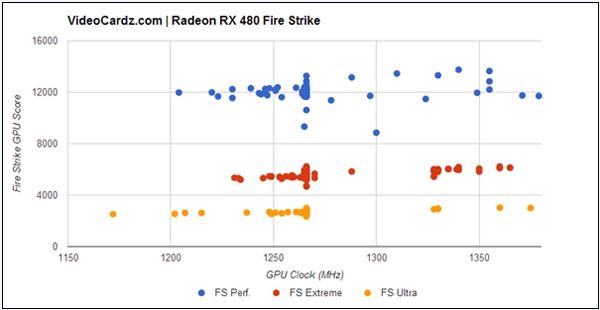 從曝光的表格來看,RX 480在3DMark Fire Strike測試中默認頻率下成績為12009分,超頻至1379MHz(顯存8800MHz)之后,成績可達13747分。