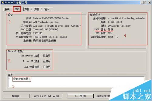4、即出現診斷對話框,首先會顯示你電腦的系統信息及主要配置。上一步有選擇檢查數字簽名,在此就能顯示出來了。