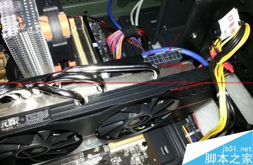 2. 找到機(jī)箱里面預(yù)先留出的顯卡供電插頭(外面盒子里面的不用,那個(gè)是備用的),機(jī)箱里面