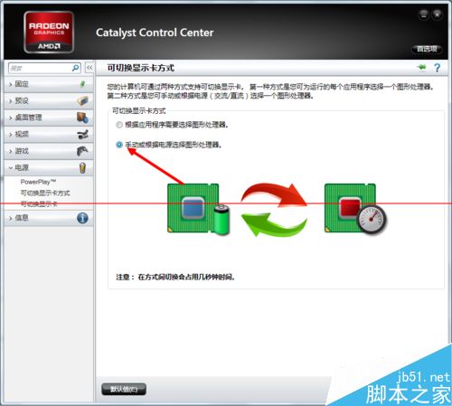 4、選擇手動或根據電源選擇圖形處理器,點擊應用