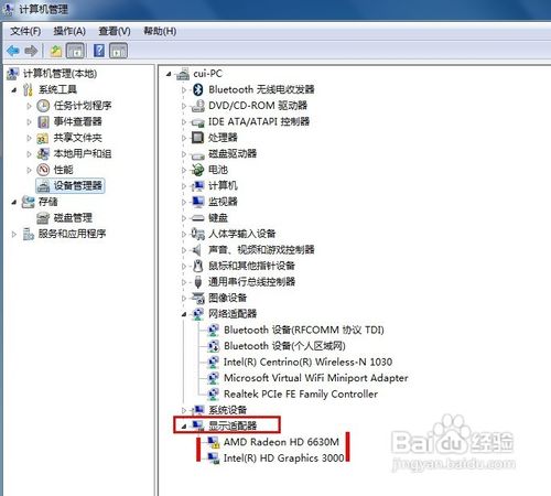 在右側(cè)顯示的 電腦設(shè)備名稱 中,顯示適配器 就是筆記本電腦的顯卡。