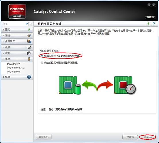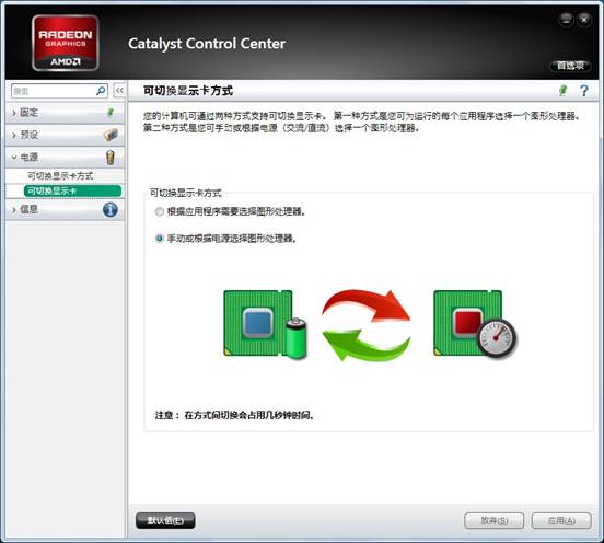 選擇可切換顯卡方式---手動或根據電源選擇圖形處理器;