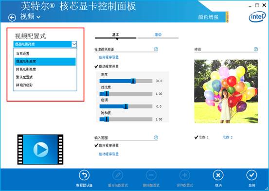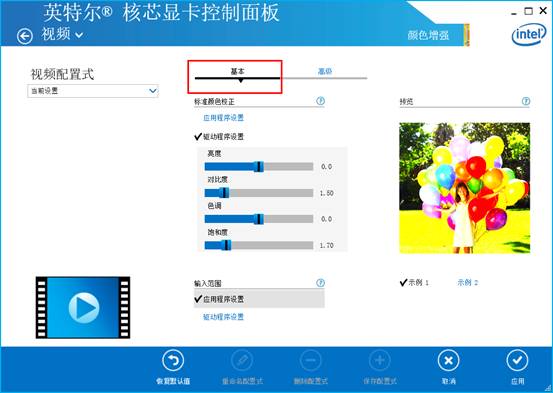 4. 視頻界面,打開默認(rèn)為顏色增強(qiáng)(基本)模式,里面可以如圖: