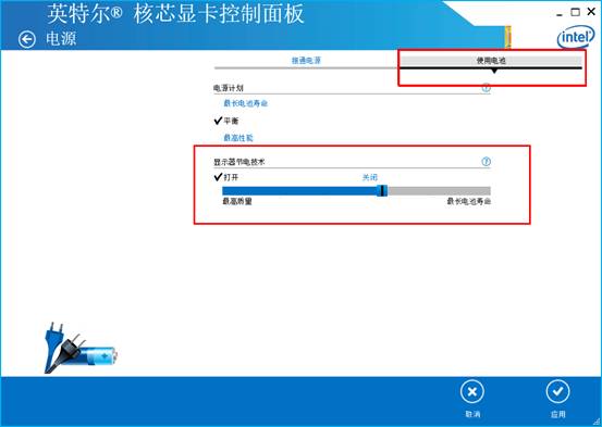 電池模式,多了顯示器節(jié)電技術(shù),可以根據(jù)使用習(xí)慣選擇對應(yīng)模式,如圖: