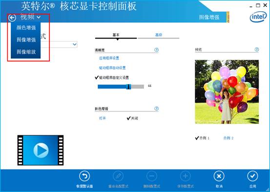 視頻里面有選項(xiàng),可以選擇圖像增強(qiáng)和顏色增強(qiáng),下圖是圖像增強(qiáng)基本模式: