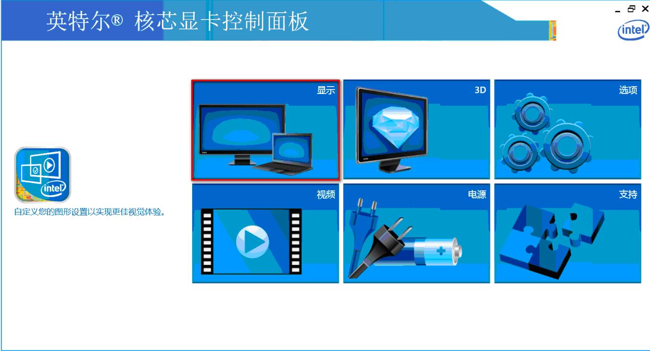 2. 進入英特爾核芯顯卡控制面板選擇“顯示”;
