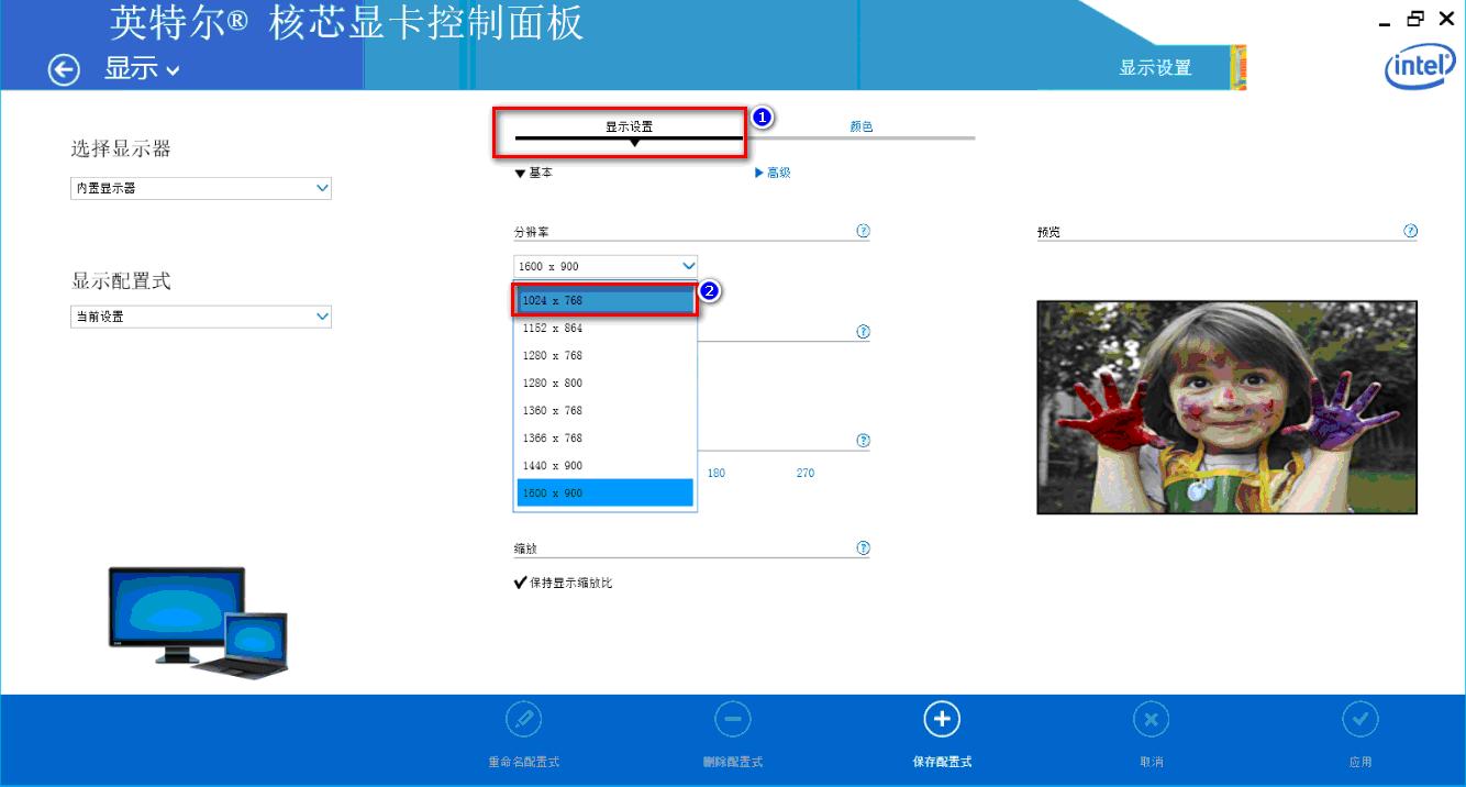 3. 選擇“顯示設置”,將分辨率改成“1024*768”;
